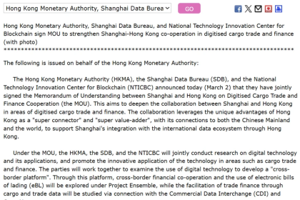 Hong Kong and Shanghai Authorities Partner to Put Cargo Trade Data on Blockchain
